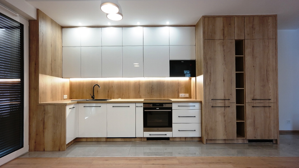 - pasek LED w listwie pod szafkami górnymi